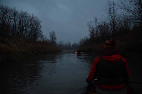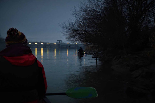 Wir hatten keine Eile und so nutzten wir den Nachmittag aus und kamen beim letzten Tageslicht an der Mündung in den Inn an. Dies machte es vor Peter nicht unbedingt leichter, in der Dunkelheit nun den Weg mit Klapprad zurück zum Auto zu finden.