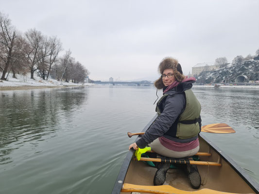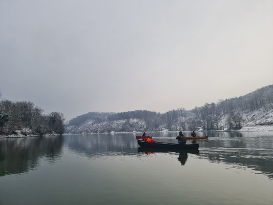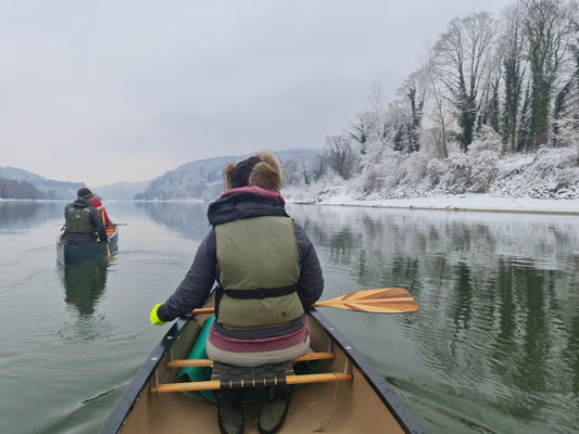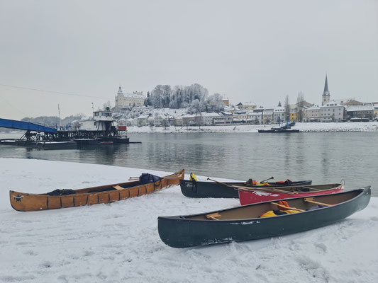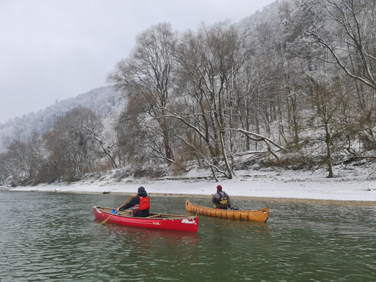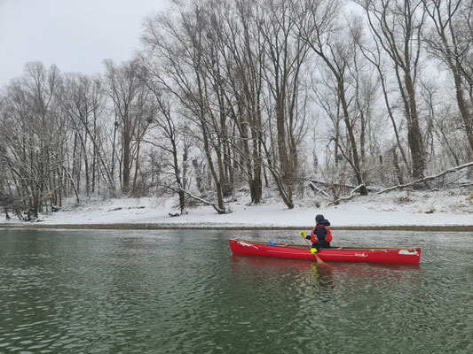 Geplant ist eine Winterausfahrt auf der Donau mit Freunden vom AOC- Austrian Open Canoe Verein. Das Wetter mein es gut mit uns und legt am Vorabend noch eine romantische Schneedecke auf.