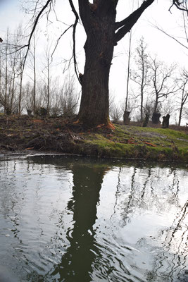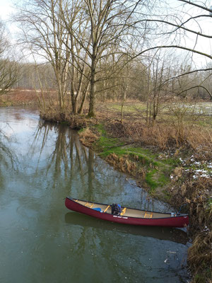 Regulierter Bach mit regliertem Pegel für die Mühlen. Mehrere Brücken und Wehre sind zu umtragen.