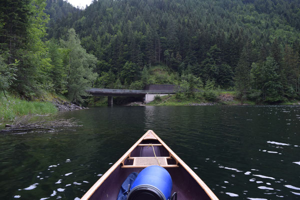 Als nach dem Zweiten Weltkrieg in Österreich nach möglichen Standorten für neue Wasserkraftwerke gesucht wurde, entschied man sich auch für diesen Platz und riegelte mit einer Staumauer das Durchbruchstal auf der südlichen Seite ab. So entstand ein etwa 5500 Meter langer Stausee. Der See ist nur etwa 80 bis 150 Meter breit und wird insbesondere im südlichen Teil von steilen, bis zu 500 Meter hohen Felswänden gesäumt. Im Norden ist die Uferbegrenzung flacher, mittelgebirgsartig. Der See ist bis zu 50 Meter tief. Entlang dem Westufer des Sees führt die Pass-Stein-Straße (L729). Nach der Flutung des Sees musste der Weg, der früher tiefer im Tal verlief, neu angelegt werden. Die Straße ist seit 2003 wegen Felssturz- und Steinschlaggefahr gesperrt. In der Nähe der Staumauer führt sie an einem kleinen Wasserfall und einem Marienbildnis vorbei.